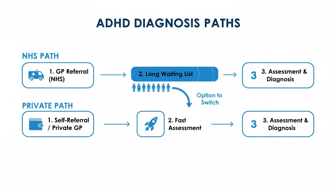 This is where private online clinics have stepped in to fill a crucial gap. They offer a genuine lifeline for people who simply can't put their lives on hold. Think of the NHS pathway as a motorway stuck in rush hour traffic, where you're barely moving. An online assessment, in contrast, is like finding a clear, open A-road—it gets you where you need to be, much, much faster.