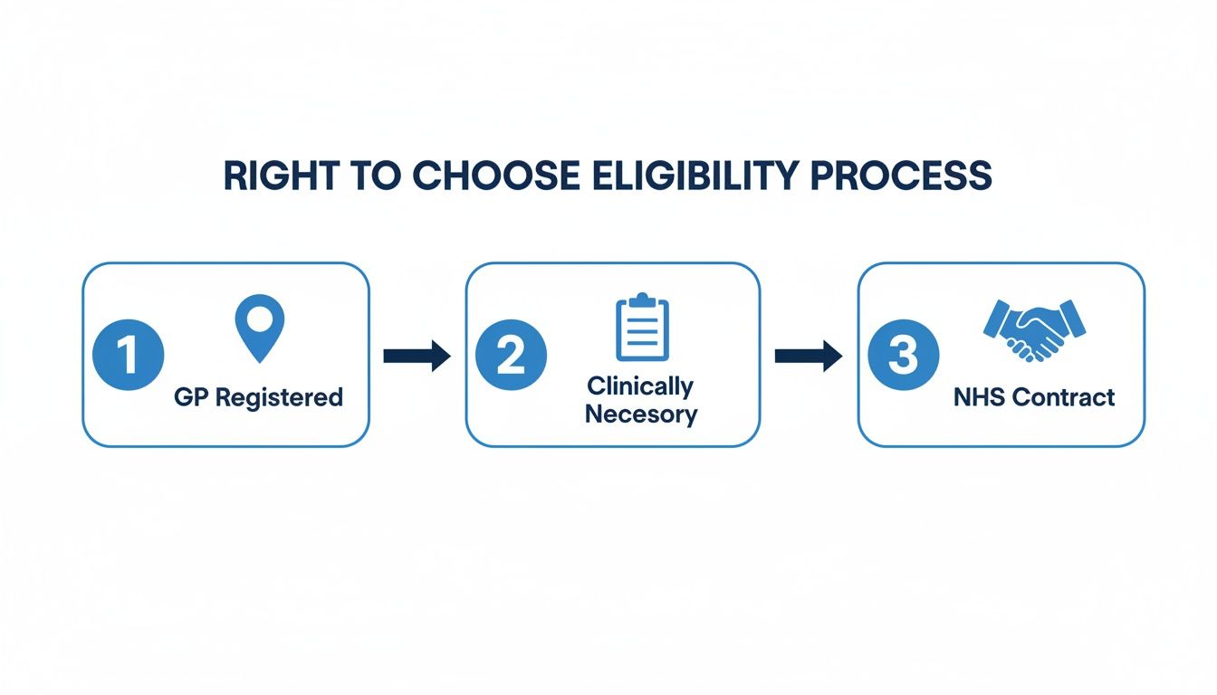 As the visual guide shows, it all boils down to three core points: being registered with a GP in England, having a genuine clinical need for the assessment, and choosing a provider that holds an NHS contract.